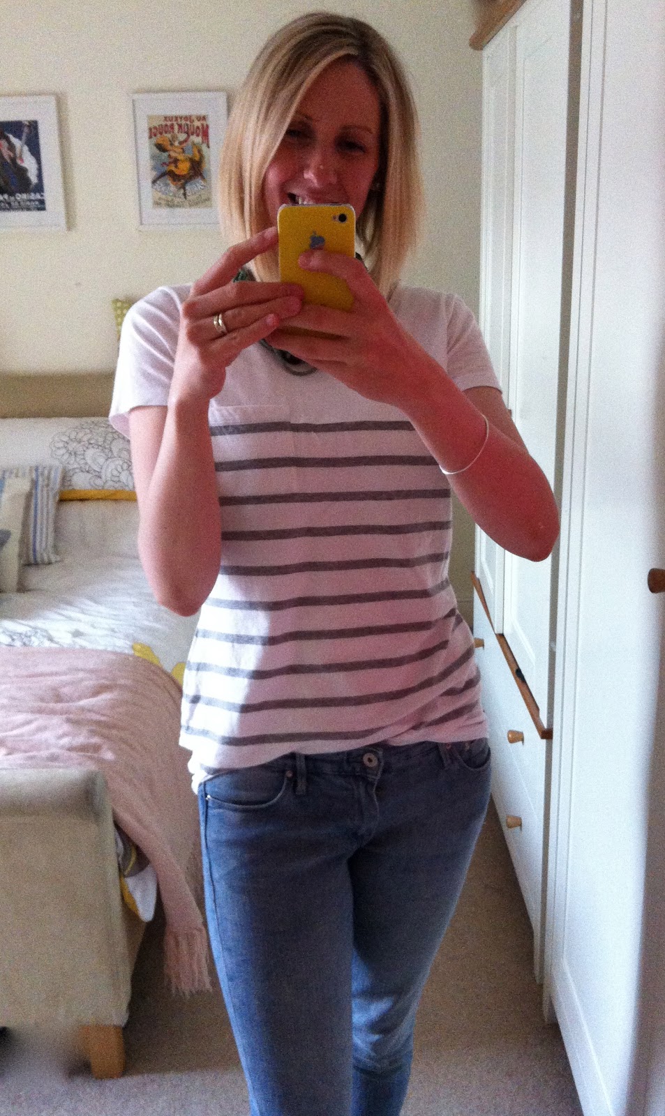 I realised today that I pretty much have a uniform of casual clothing consisting of navy and white striped t-shirts. I seem to automatically be drawn to them when I have no time to think about what to wear, it's like an addiction. Maybe I should go cold turkey?